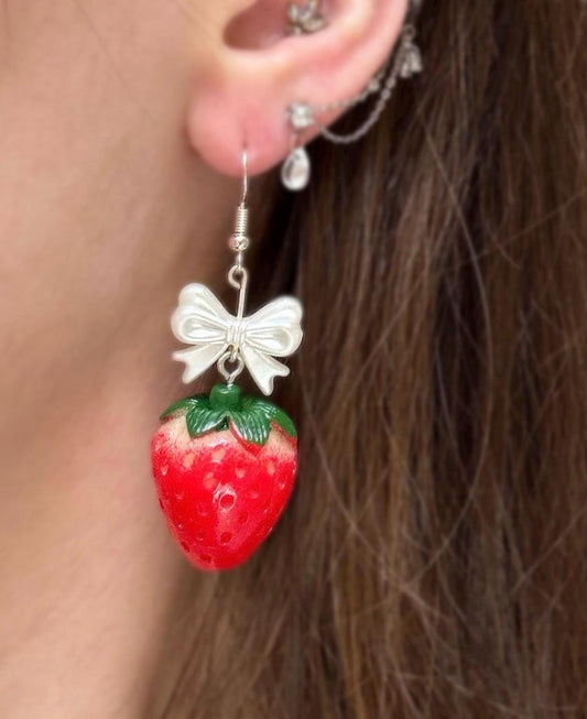 Strawberry Picnic Earrings, Coquette Floral Earrings, Handmade Beaded Earrings, Cottagecore Earrings Fairycore Handmade Jewelry